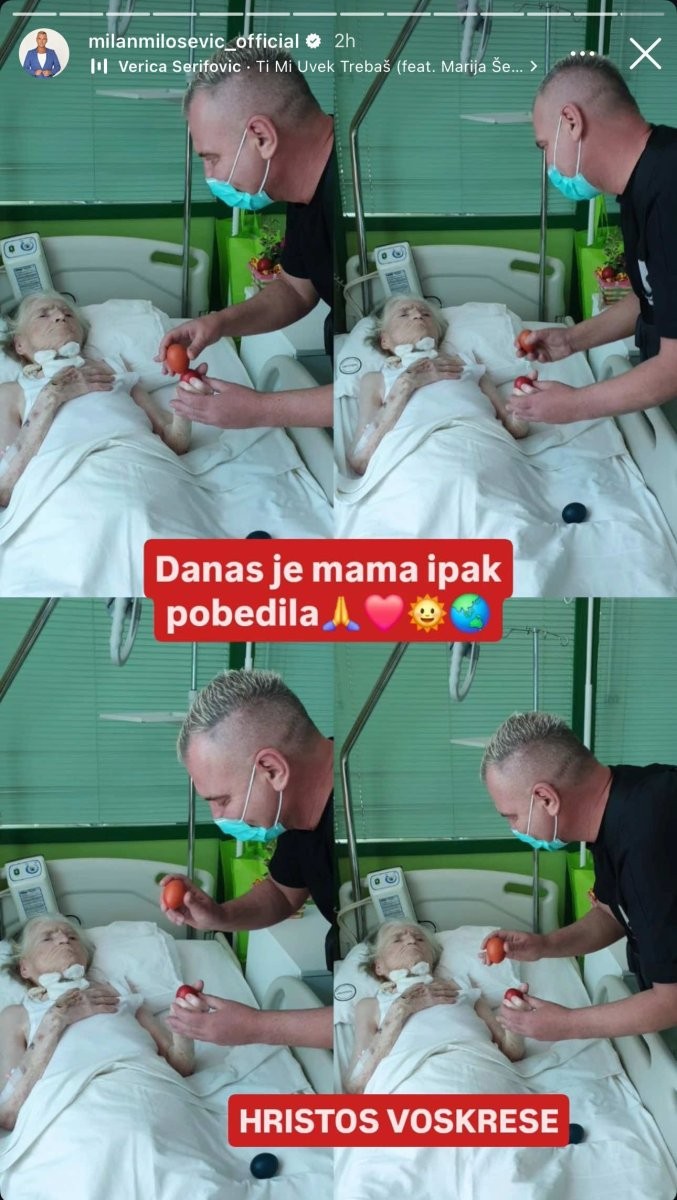 Voditelj Milan Milošević podijelio je dirljivu fotografiju iz bolnice, na kojoj se vidi trenutak kada se sa svojom majkom Rajkom kuca vaskršnjim jajima.